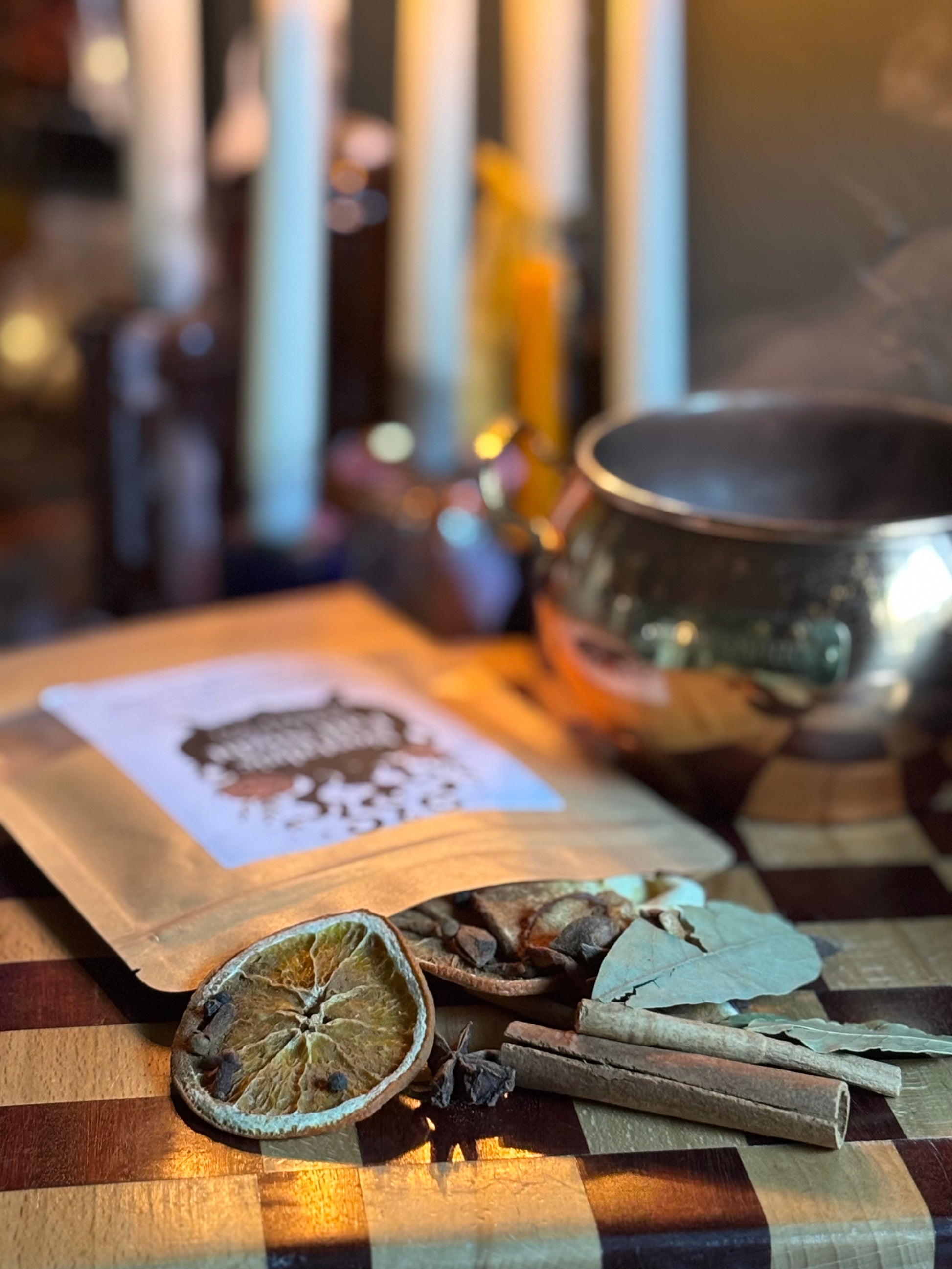Inside each kit, you’ll find a hand-blended mix of dried oranges, dried apples, cinnamon sticks, star anise, cloves, and bay leaves—all chosen for their warmth, protection, and nostalgic autumn energy.